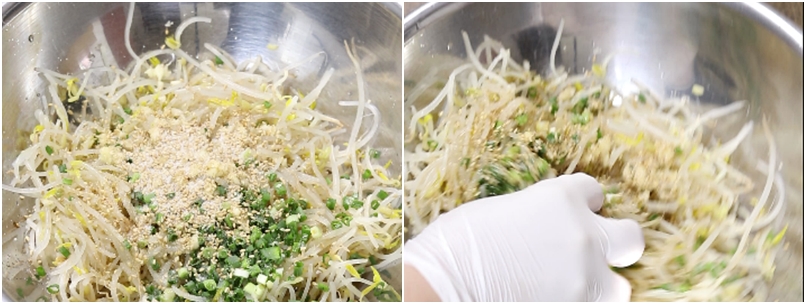 4. 물기뺀 숙주를 그릇에 담고요~ 쪽파2줄기 총총 썰은거 넣고요