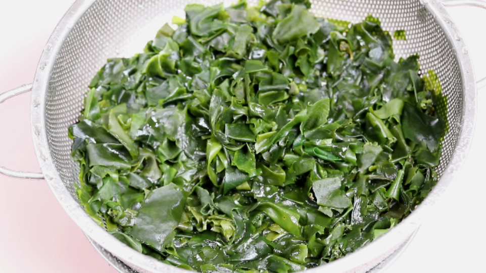2. 불린 미역을 세척하고 체에 받쳐 물기를 빼줍니다.